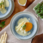 Spargel mit veganer Sauce Hollandaise und veganem Schnitzel